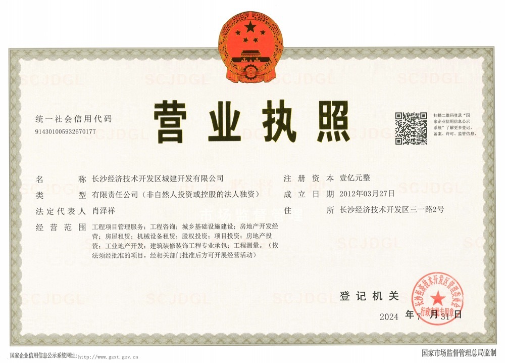 長沙經(jīng)濟(jì)技術(shù)開發(fā)區(qū)城建開發(fā)有限公司注冊(cè)資本11000萬。公司于2012年3月29日正式掛牌成立,分別于2017年8月和2020年3月更名,主要承擔(dān)園區(qū)政府投資的基礎(chǔ)設(shè)施和公共服務(wù)設(shè)施設(shè)施、自有投資項(xiàng)目的綜合開發(fā)和建設(shè)、集團(tuán)公司及其子公司項(xiàng)目建設(shè)管理。公司于2017年1月取得房地產(chǎn)開二級(jí)開發(fā)資質(zhì),2019年初完成工程咨詢備案,2021年12月取得建筑裝修裝飾工程專業(yè)承包二級(jí)資質(zhì),2022年4月取得裝飾裝修專業(yè)承包二級(jí)資質(zhì)配套安全生產(chǎn)許可證,2023年2月取得乙級(jí)“工程測(cè)量”和“界限與不動(dòng)產(chǎn)測(cè)繪”資質(zhì)。截至2022年底,公司資產(chǎn)總額達(dá)35.98億元。